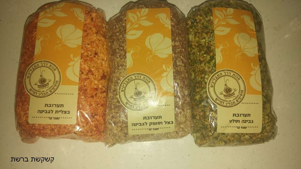 תערובת פיקנטית לגבינה, תערובת בצלית לגבינה, תערובת בזיליקאן, תערובת לחביתות ופשטידות, תערובת לצזיקי, תערובת בצל וסומק לגבינה, תערובת עגבניות ונענע לגבינה.